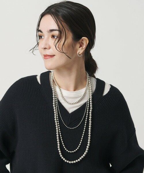 大きさと長さの異なるボールチェーンを4本あしらったネックレス。