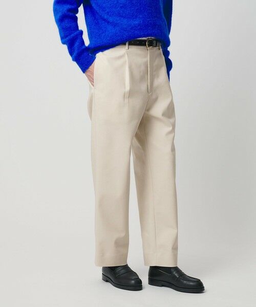 スラックスの端正なディテールに、チノパンライクなカラーリングを融合させ、モード感と程よいカジュアルさを両立しました。
