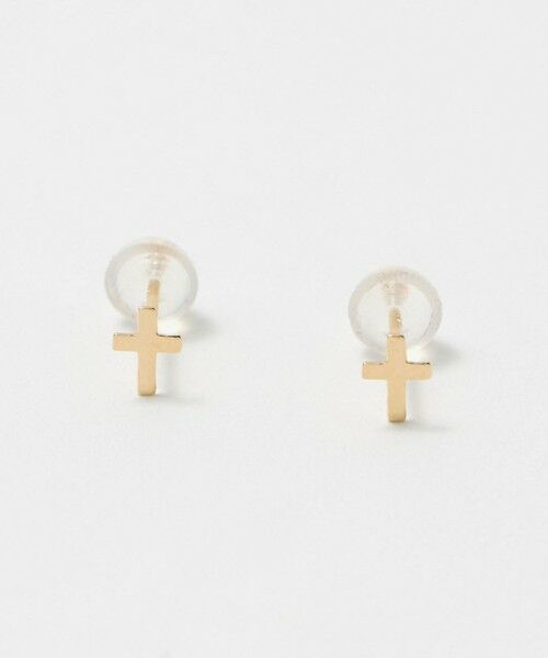 K18ゴールドで作製したミニマルデザインのクロスモチーフピアス。