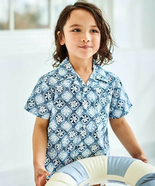 同じ柄を使用したボーイズTシャツ(1115-73143)とアンサンブルっぽく重ね着してもおしゃれです。