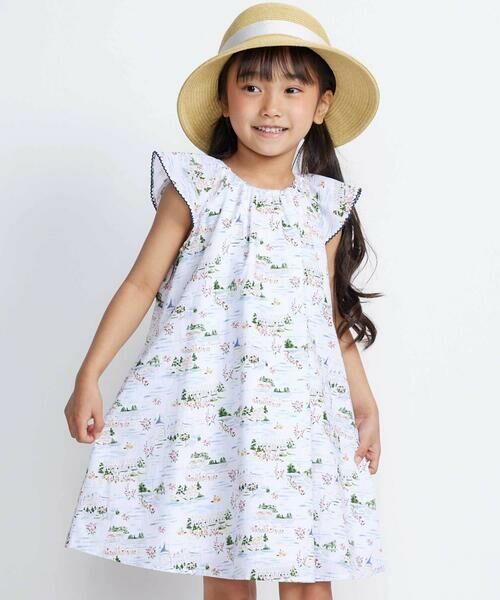 ブローニュの森にあるバラ園や湖をイメージした水彩風プリントが爽やかなワンピース。