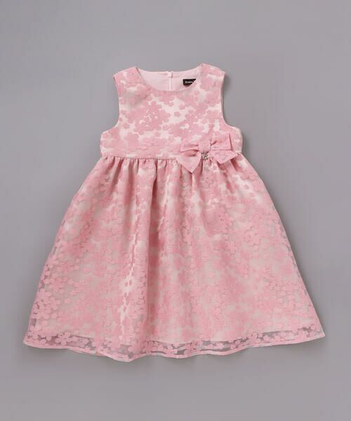 ウエストの大きなリボンと丸みのある花柄が可愛らしいワンピース。