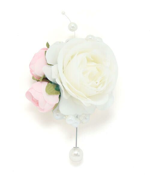 上品なパールが輝く、ローズとパールモチーフのコサージュ。