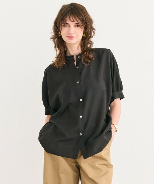 袖口がふわりと広がる優しい印象のパフブラウス。ゆったりとしたオーバーサイズと透け感が春夏に涼しく、上品なヘルシーさを楽しめるアイテム。1枚はもちろん、前開きなので羽織としても着回しでき、ヒップにかかる長め丈で幅広いボトムに合わせやすいシルエット。柔らかなフォルムながらスタンドカラーがシャープさを加え、シンプルなパンツやスカートに合わせるだけで大人の抜け感のある着こなしに。軽い肌離れの良い生地がラインを拾いにくく、優し気なオフ白やシックな黒、ナチュラルなグリーンと上品なブラウンの4色展開で、オフィスや普段のカジュアル着まで幅広いシーンで活躍するブラウスです。