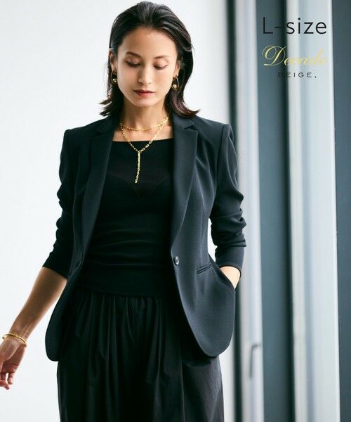 ベイジ、を代表するCINDYの代名詞にもなっているのテーラードジャケット。細めの襟がポイントで、同素材のノーカラージャケット同様、前を閉めなくても身体の線を美しく出してくれるバックシルエットが格好いいシングルジャケットです。抜群のストレッチで着心地も軽く細めの筒袖は、軽くたくしあげていただくとソフトでシャープな着こなしを楽しめます。トープ、グレー、紺、黒と合わせやすいカラー展開で、同素材のボトムに合わせてスーツでも合わせられ、お仕事着やオケージョンはもちろん、コートの重ね着やカジュアルに普段の羽織りとして様々なシーンで活躍するジャケットです。