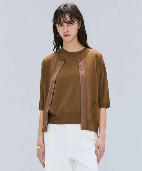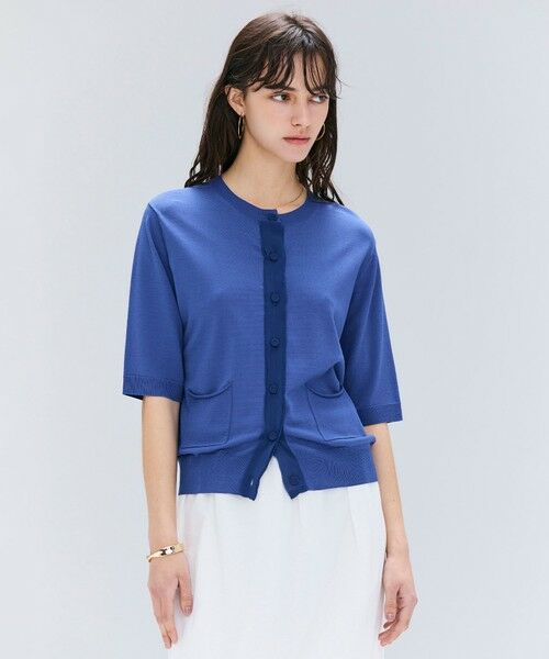 昨シーズンもご好評をいただいたカーディガンが、より着こなしやすく新たなデザインにアップデートして登場。柔らかな着心地はそのままに、前立てに施された断ち切りジョーゼットが新しくシンプルな中にもさりげない個性をプラスしたデザイン。肘にかかるやや長めの袖が気になる二の腕を優しく包み込み、コンパクトなクルーネックが上品に、前を閉めてプルオーバーとして、同素材のニットとアンサンブルとして幅広く着回せるシルエット。ワンピースやスカートと合わせたしなやかで女性らしい装いや、パンツと合わせた知的で洗練された雰囲気など、オフィスから週末のリラックスタイムまで、あらゆるシーンに頼れるカーディガンです。