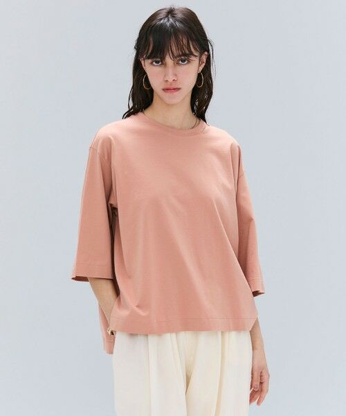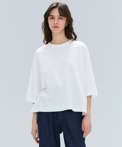 柔らかな肌触りのカットオフ入りオーバーサイズTシャツ。デコルテを美しく見せるスネックがさりげない抜け感を演出し、ゆったりとしたシルエットに洗練されたシャープさをプラス。上質なコットンを贅沢に使用することでカジュアルながらも品のある印象にまとめ、タイトスカートと合わせてオフィスにも、デニムやワイドパンツと合わせてカジュアルスタイルを楽しむのもおすすめです。着心地のよさとさりげないデザインで、日常にリラックス感を添えるカットソーです。
