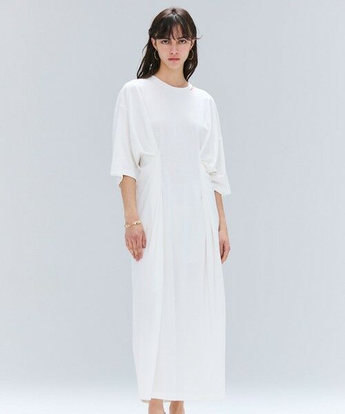 柔らかな肌触りのロングワンピース。ゆったりとしたシルエットながら、ウエストタックがラインを優しくカバーした女性らしいデザイン。ネックラインのスリットがさりげない抜け感をプラスし、カジュアルに見えがちなカットソー素材も、軽やかなニュアンスのある印象に。さらりと着るだけでサマになり、アクセサリーやバッグで個性を添えるのもおすすめ。リラックス感がありながらも上品な佇まいで、デイリーからお出かけやご旅行にも、幅広いシーンで活躍してくれるワンピースです。