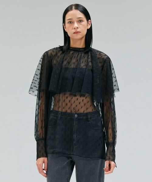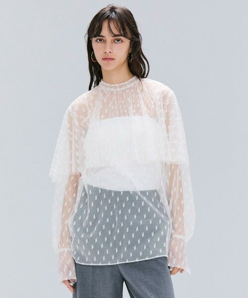ケープのような重なりが美しい総レースブラウス。繊細な透け感とレース模様がどんなスタイリングにも華やかさを加え、首元をすっきりと見せるスタンドカラーとカフスボタンが甘さを抑える洗練されたデザイン。インナーにベアトップやキャミソールを合わせ、デニムやチノパンツに合わせたロマンティックなエッセンスをプラスしたカジュアルコーデや、スカートやきれいめパンツと合わせたオケージョンやお食事など、シーンを選ばず着回せるブラウスです。