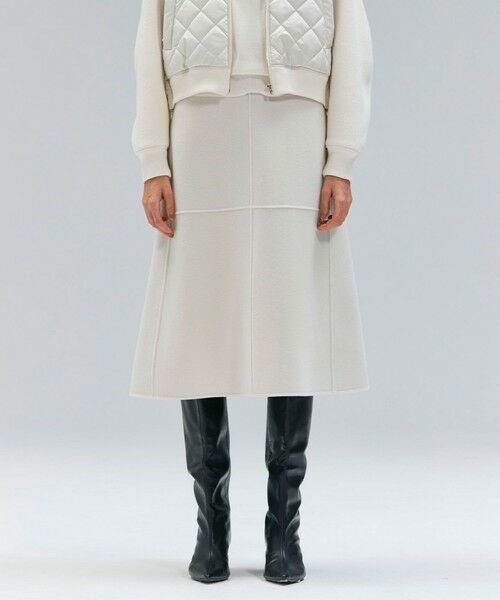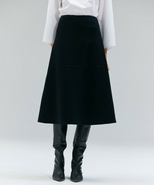 暖かく上品に着映える、Aラインスカート。やや裾に広がる女性らしい柔らかな印象で、リバー素材ならではの美しい切り替えデザインがさりげないアクセントになるデザイン。軽くしなやかな上質素材が、シンプルながらもコーディネートの主役になり、これからの季節に暖かくお召しいただけます。同素材のコートとセットアップとしても着回しでき、オフィスでのきれいめスタイルにはもちろん、休日のカジュアルトップスとも相性抜群。大人の日常を洗練されたスタイルに格上げしてくれるこだわりのスカートです。