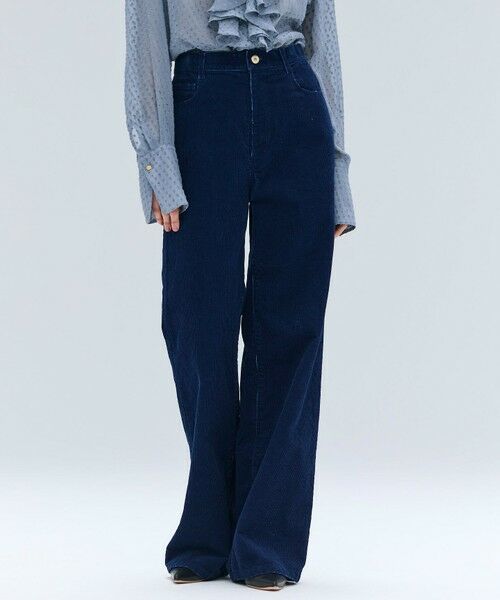 裾にかけてストンと落ちるワイドシルエットのバギーパンツ。カジュアルな見え感ながら、腰まわりのすっきりとしたラインで女性らしいメリハリを作るデザイン。トップスインで、目線を上に向けることでコーディネート全体をバランス良くまとめ、見た目からでも暖かく真冬でも季節感を楽しめる旬なコーデが楽しめます。インディゴ染めの華やかな色合いがコーデに新鮮さを与え、すっきりとしたラインがマニッシュ感を出しやすく、同素材のセットで合わせれば統一感のある大人の雰囲気に。ざっくりニットやロングコートにも、裾からちらりと見える脚元がおしゃれ感を演出し、お食事やお仕事のキレイめシーンにも遊びを添えるパンツです。