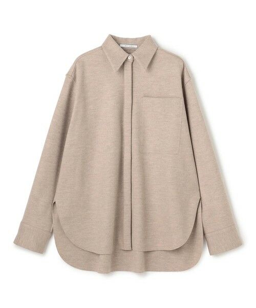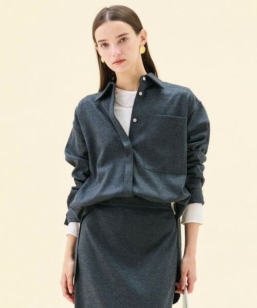 BEIGE、人気のウール素材を使ったオーバーサイズシャツが登場。軽い着心地が初秋からロングシーズン着回しでき、表からボタンが見えない比翼仕立てが、ミニマルながらも洗練されたおしゃれを楽しめるデザイン。大きめな胸ポケットがデザインのアクセントになり、裾は断ち切りで軽やかな印象に。ブラウスとしてはもちろん、季節の変わり目にはTシャツやタートルネックの上に羽織るアウターとしても活躍し、同素材のスカートやイージーパンツと合わせたセットアップスタイルもおすすめ。インナー次第で、長いシーズン着回せるウールブラウスです。