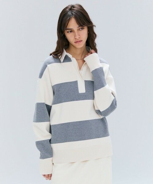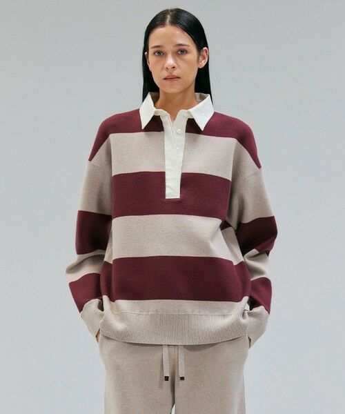 カジュアルな雰囲気に、女性らしい上品さをプラスしたラガーニット。インパクトのあるボーダー柄に、艶のあるツイル生地を襟元に施したメリハリを感じるデザイン。たっぷりと身体を覆うオーバーサイズがこなれ感を出し、いつものコーデにプラスするだけで大人のカジュアルスタイルが完成します。同素材のパンツと合わせれば、統一感のあるセットアップとしても着回しでき、デニムやきれいめなスカートとも相性が良く、幅広いコーディネートが楽しめるラガーニットです。
