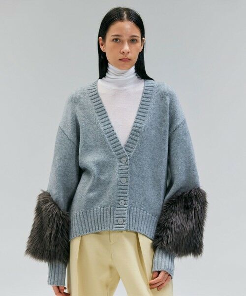 包み込まれるような柔らかなVネックカーディガンが登場。袖口に施された毛足の長いフェイクファーが、まるで本物のようなふわふわとした質感とボリュームで、着こなしにリュクスな表情と遊び心をプラスします。ゆるめのオーバサイズがジャケットやコート代わりの端境期にちょうど良く、さっと羽織るだけでコーデが華やぎます。デニムでカジュアルダウンしたり、きれいめパンツやスカートと合わせてオフィスやお食事にシックな雰囲気で着こなしたりと、アレンジ力抜群。いつものコーディネートにプラスするだけで、ワンランク上のスタイルが完成するカーディガンです。