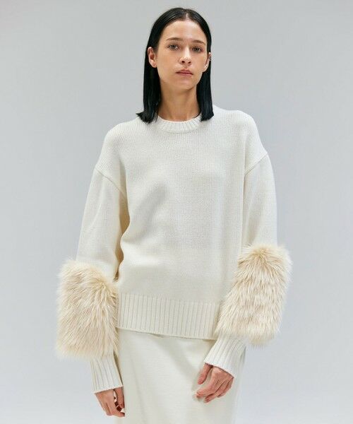 包み込まれるような柔らかなクルーネックニットが登場。袖口に施された毛足の長いフェイクファーが、まるで本物のようなふわふわとした質感とボリュームで、着こなしにリュクスな表情と遊び心をプラスします。程よいゆるさがニュアンスを出し、着るだけでコーデが華やぎます。デニムでカジュアルダウンしたり、きれいめパンツやスカートと合わせてオフィスやお食事にシックな雰囲気で着こなしたりと、アレンジ力抜群。いつものコーディネートにプラスするだけで、ワンランク上のスタイルが完成するニットトップスです。