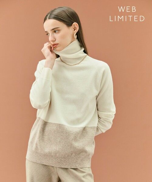 【WEB限定・洗える】DEMING / バイカラーウールタートルネックニット