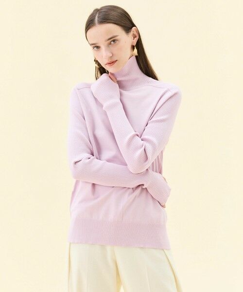 さらりとした素材とお手入れのしやすさが人気のハイネックニット。ややゆったりとした身幅にさりげない指穴と裾スリットがシンプルながら着映えするデザイン。ネックは短めに設定しているので、折り返さずにたゆませて着ていただくのがおすすめです。ワイドパンツやタイトスカートにも合わせやすく、重ね着やトップスインしたスタイリングももたつかずに着こなせます。一枚あるだけで着こなし幅が広がるタートルニットです。
