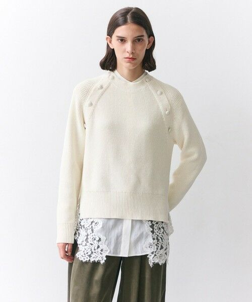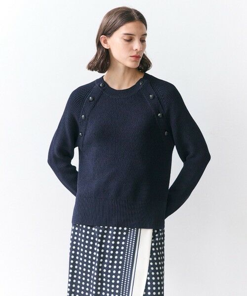 スポンディッシュな畦編みで仕立てた、マリンボタンニット。裾の長めリブとスリットが腰回りをすっきりと見せ、マリンボタンがジュエリーのように華やぎを添えるデザイン。1枚やレイヤードアイテムとしてコーデにこなれ感をプラスし、ワイドパンツやハイウエストスカートとのバランスも美しく決まります。さらりとした上質なコットン素材とタイムレスなデザインが、デイリーから華やぎのあるオフィススタイルまで、自在にスタイリングを楽しめるマリンニットです。