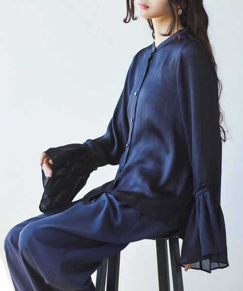シンプルながらも袖のデザイン性が一枚で決まるブラウスです。パンツにもスカートにも合わせやすく、コーディネートの幅が広がります。