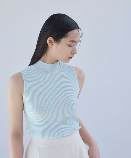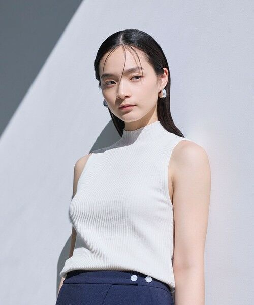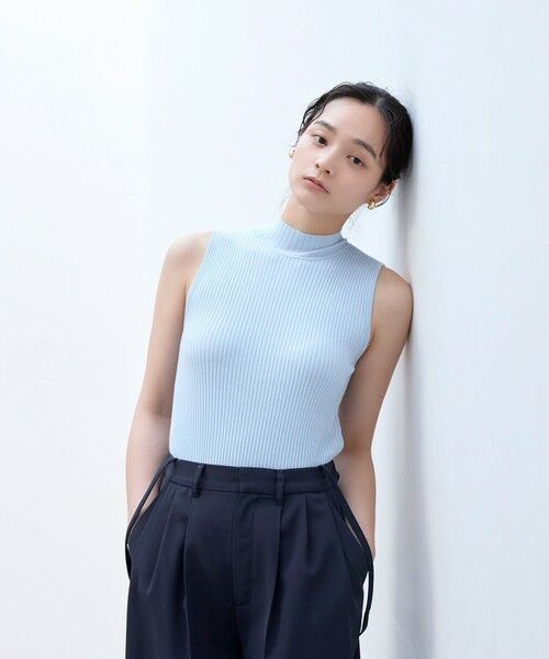 肌寒い日にも活用できるショートボトルネックのストレートトップス。