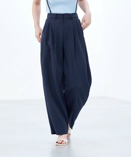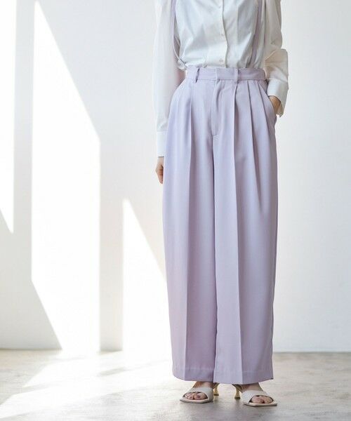 センタープレス入りでクリーンな印象を与え、ハリ感と落ち感のある素材でモードな雰囲気を演出します。