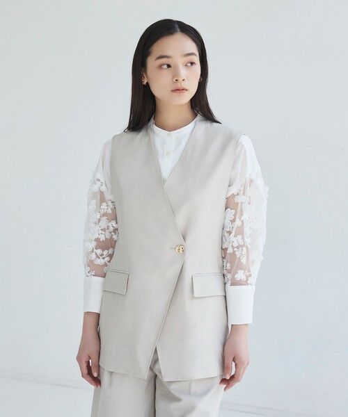 軽やかな着心地と上品なデザインが魅力的なジレです。Tシャツとカジュアルに合わせても、きちんと感のあるアイテムとレイヤードしても様になる、大人の女性にぴったりの一着です。