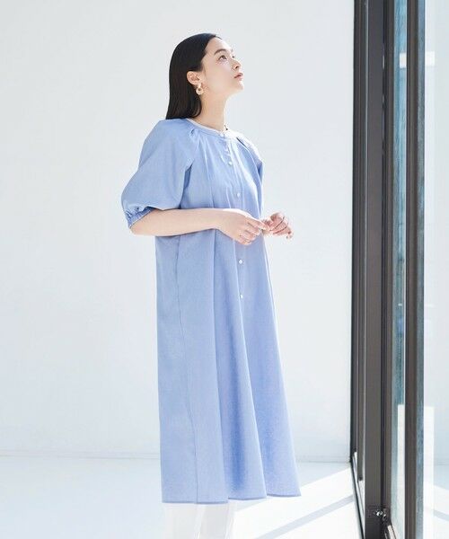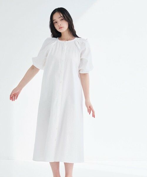 袖にタックとギャザーをたっぷり施した、華やかなワンピース。一枚で着映えするデザインで、羽織りとしても活用できる万能アイテム。麻混素材で夏の暑さにも快適に対応し、長いシーズン活躍します。