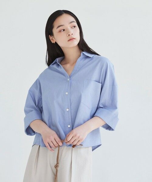 スキッパー襟の分量感たっぷりのシャツブラウス。太めの袖は短く折り返しができ、羽織としても活躍。後ろのボックスプリーツが空気をはらみ、キレイなこなれ感を演出。冷房対策や日除けアイテムとしても長く使えます。
