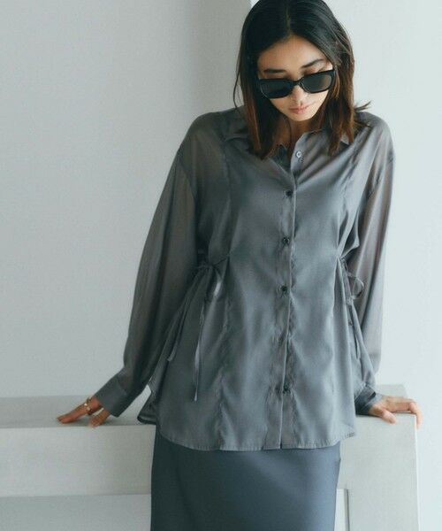光沢のあるシアー素材を使用したルーズオーバーシャツ。ウエストに施された共生地リボンコードにより、シルエットを自在に変えられるのが魅力です。ストレートに着ればリラックス感のある大人のカジュアルスタイルに、ウエストを絞ればエレガントな印象に。ニュアンスカラーが大人のこなれ感を演出します。ゆとりのあるシルエットで、1枚で着用するのはもちろん、軽い羽織としても活躍する1着です。