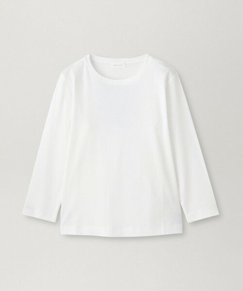 コンパクトコットンを40ゲージのハイゲージで編み上げた、目面が細かく整った上質素材を使用しています。シルケットバイオ加工と毛焼き加工を施すことで、カジュアルなロンTながらも上品な光沢感を実現しました。きれいめな表面感と着心地の良さを兼ね備えています。
