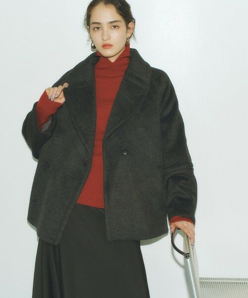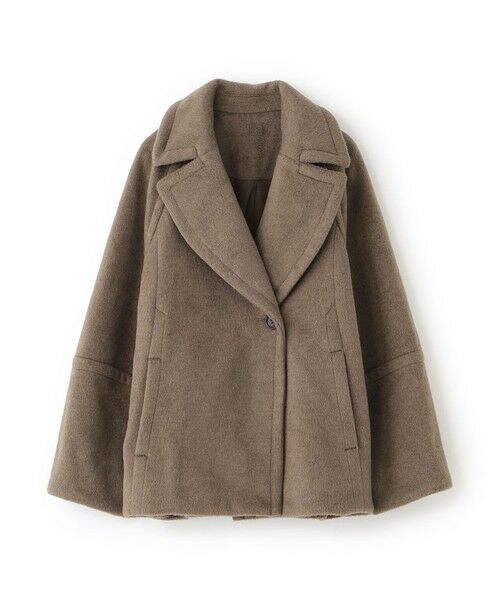 ややAラインに広がったシルエットと、丸みのあるフォルムがポイントのショートコート。大き目の襟とややボリュームのある袖のフォルム感も、デザインポイントになっています。ヒップにかかる70?丈で、スカートにもパンツにもバランスよく合わせられます。