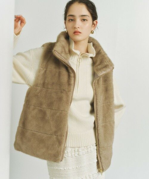 短めの毛足でかさ張らずスッキリとしたシルエットなので、真冬のコートのインナージレとしてもおすすめです。 ダウンベストのようにも見えるボーダーラインの入ったファーなので、アウターとして着た時にもデザインアクセントになります。きれいめな表情なので、エレガントにもカジュアルにも着回し可能。