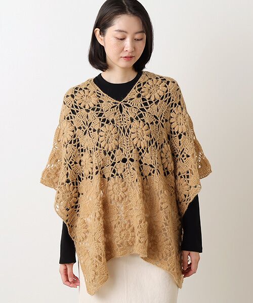 ありそうでなかなか無い、贅沢にモヘアの手編みによるポンチョ型の羽織ものです。ケープやストールの様に自由にお好きな形で羽織っていただけます!優しく包まれる感じが気持ちまで温かくしてくれます!