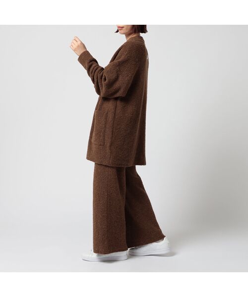 暖かみのある柔らかな表情の素材がポイントのオーバーサイズニットカーディガン。程よくルーズなサイズ感がコンフォータブルな着心地を約束します。少し長めのミドル丈なので気になる部分の体型カバーもできるのが嬉しいポイント。リラックス感のあるビッグシルエットがこなれ感を演出します。