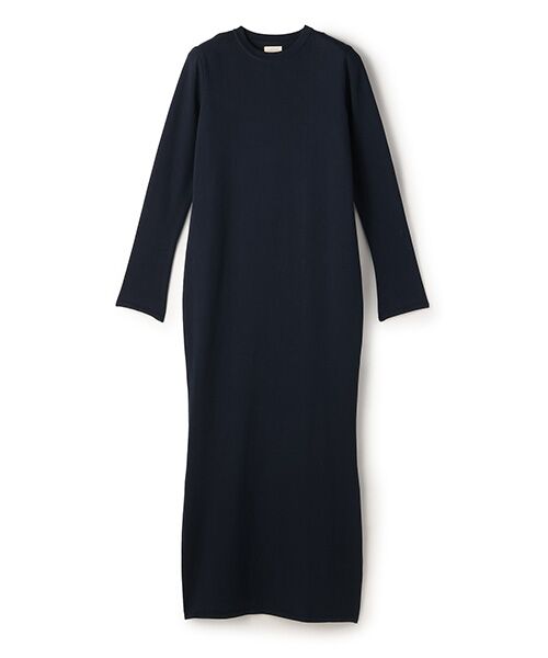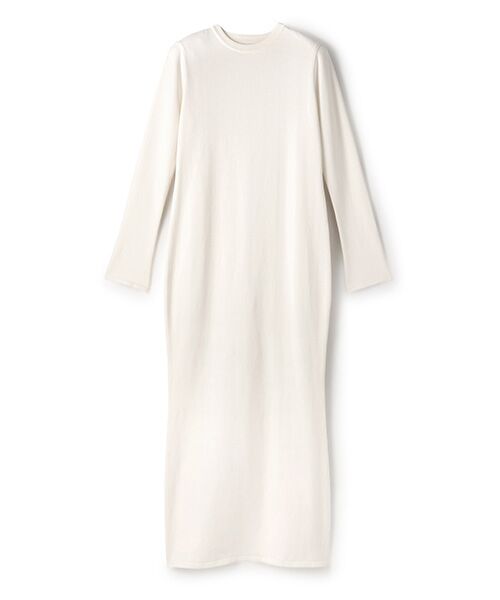ストレートショルダーがポイントのロングスリーブニットマキシドレス。足元にたっぷりとたまる着丈と、手の甲までかかるくらい長くととった袖丈が特徴です。ネックが詰まったミニマムなデザインとコンパクトなサイズ感は、品のある女性らしさをより引き立たせてくれます。マキシ丈に設計することで足捌きがしやすく、ショルダーラインの肩パットは取り外し可能なのも嬉しいポイント。1枚でさらっと着用するのがおすすめ。 アクセサリーなどでポイントを持ってくるとぐっとこなれたスタイルに。足元をサンダルやスニーカーと合わせて抜け感のあるスタイルもおすすめです。