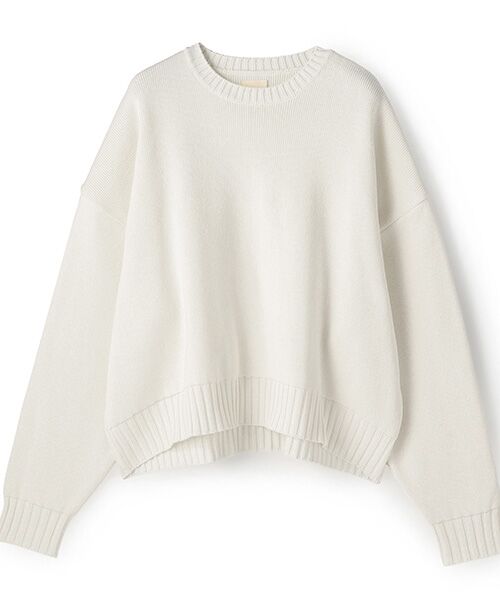 ゆったりとしたルーズなシルエットがポイントのクルーネックニットプルオーバー。ウエストイン・アウトスタイルでもボトムと合わせやすい着丈に仕上げました。ゆったりとしたオーバーサイズのシルエットと裾や袖にあしらったリブ使いがこなれ感を演出します。ドロップショルダーデザインで気軽さがありながら、上品な風合いが特徴です。袖口のリブはたくし上げた時に止まるサイジングも嬉しいポイント。タイトめなスカートやスラックスと合わせたキレイめなスタイルがおすすめ。デニムと合わせたカジュアルなスタイルとも相性の良い1枚です。