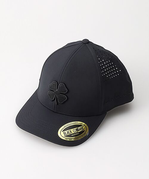 生地と同色のクローバーが立体的に刺繍されたシンプルデザインが特徴。調整可能なスナップバックに通気性の良いレーザーパンチの同色生地で機能にも優れています。