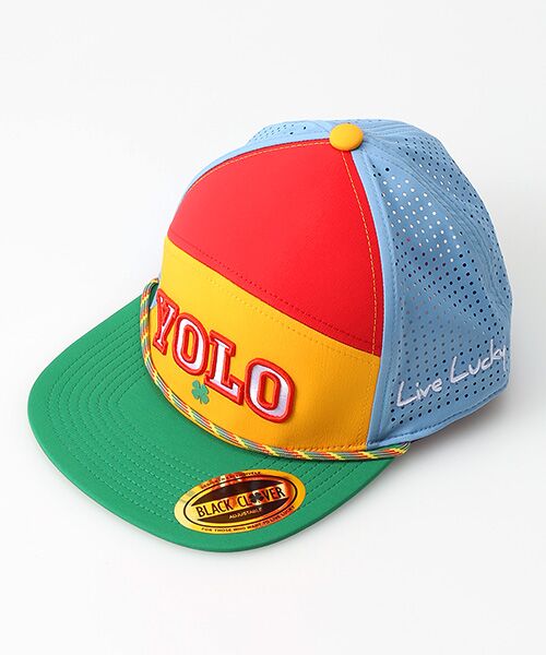 遊び心満載なキャップの登場です!一度きりの人生を思い切り楽しむ " YOLO (You Only Live Once) " はブラッククローバーのブランドコンセプト " LIVE LUCKY "と通づるところがあります。
