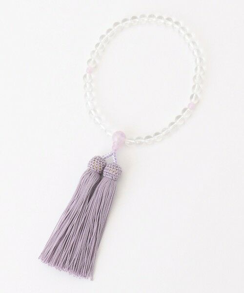 ホワイト系:本水晶と淡い紫色が上品な藤雲石を組み合わせたカラーです。透明感のある本水晶をベースに、アクセントに藤雲石を入れて引き締まった印象のデザインとなっております。房は柔らかい薄紫色で、性別・年齢問わずお使いいただけます。ピンク系:落ち着いたピンク色のローズクォーツを使用し、柔らかく女性らしい印象のカラーです。房は馴染みの良いピンク色で、全体の色味を揃えることで統一感のあるデザインにしております。
