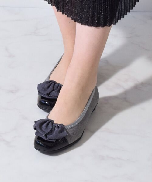 フワっと形作ったラメリボンがアクセントのウェッジヒールウォーキングパンプス。キチンとし過ぎていないちょっとラフなリボンは甘すぎず、カジュアルなコーデにも似合います。足を優しく包んでくれるマシュマロフィットな履き心地のオリジナルのモールドソールは足にフィットするような快適な作りと、つま先に消臭機能もついている万能ウォーキングパンプスです。