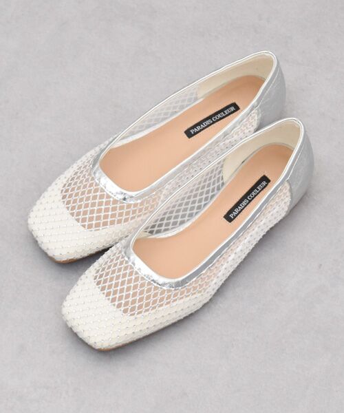 春夏らしい雰囲気のスクエアトウのフラットパンプスが「パラディクルール」から登場しました。ラインストーン付きチュールの素材感がヌーディーでエレガントな雰囲気です。シンプルなデザインで様々なスタイリングにマッチする一足です。