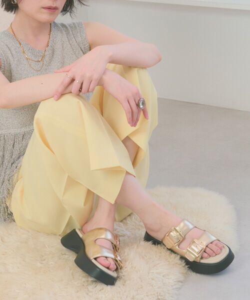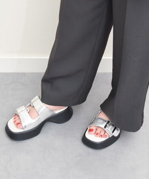 ボリューム感のあるアウトソールがカジュアルな印象のダブルバックルミュールサンダルは、ふっくらとしたパフィーベルトで足あたりがよく、甲を覆うデザインなのでホールド感があります。軽量でクッション性に優れたモールドソールが歩行時の負担を軽減してくれます。