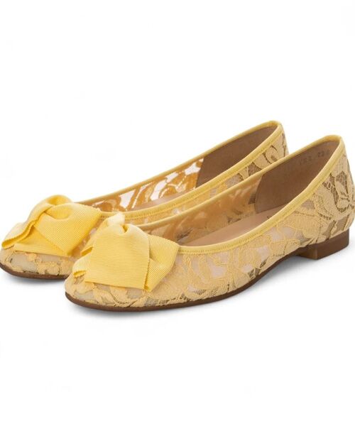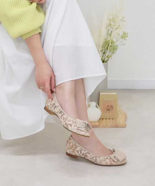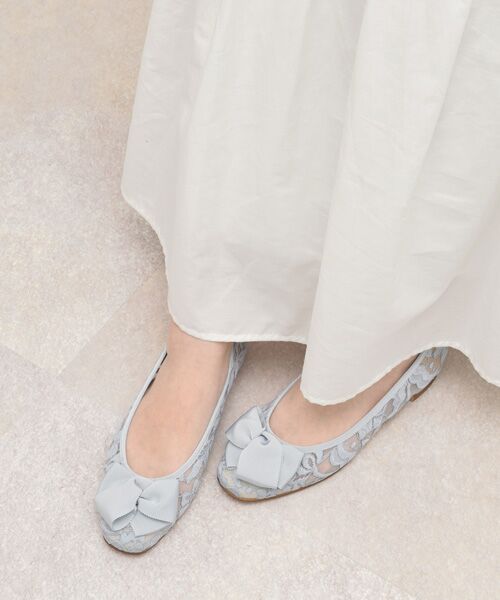 大きめのグログランリボンが大人かわいいフラットパンプス。
