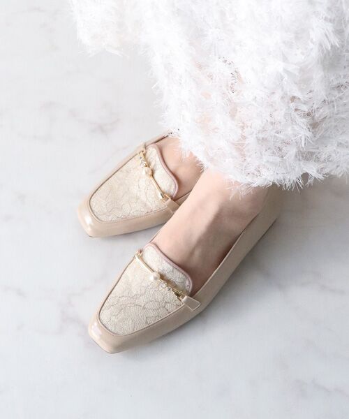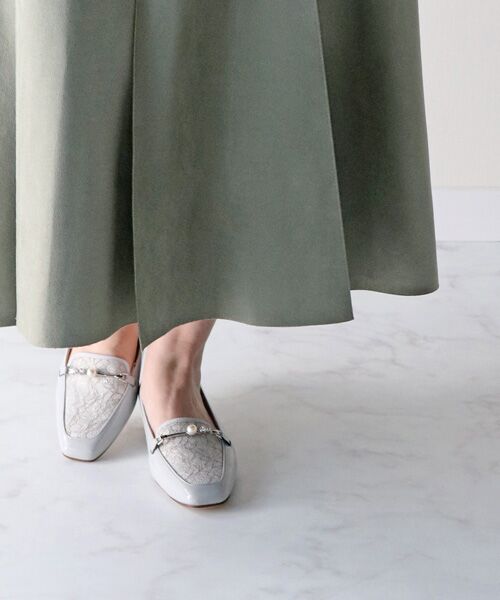 シンプルなデザインの中にきらりと輝くパールやビジューをプラスした上品なデザインのローファー。