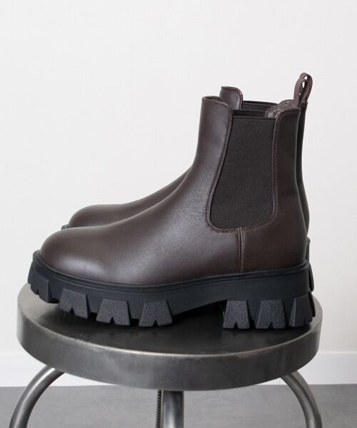 5.5cmヒールのトラックソールサイドゴアブーツは、ボリューム感のあるフォルムでワイドパンツと相性の良いアイテムです。