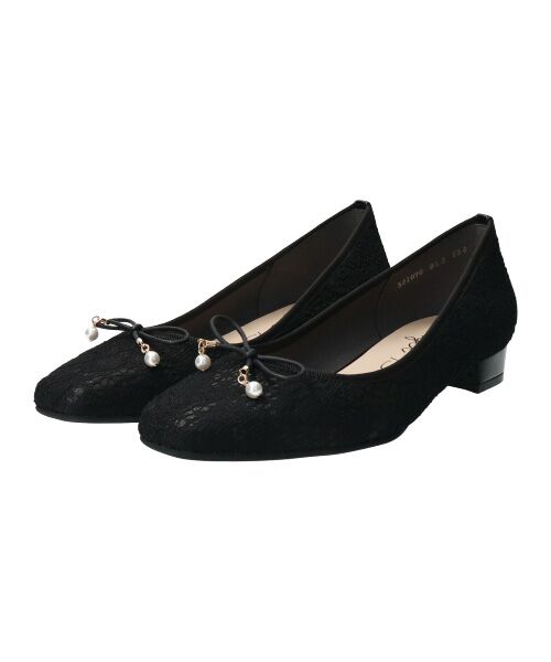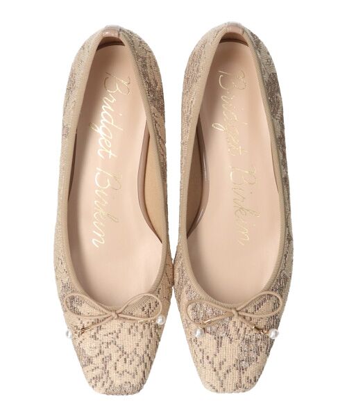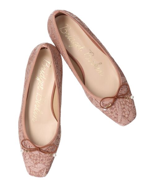 【BRIDGET BIRKIN/ブリジット バーキン】暖かみのある冬のレース生地の下からキラキラ輝くグリッターがのぞく上品で大人可愛い1足。リボン先にはパールが付いてアクセントになっています。歩きやすい2㎝ヒールでデイリーに履いて頂けるパンプスです。