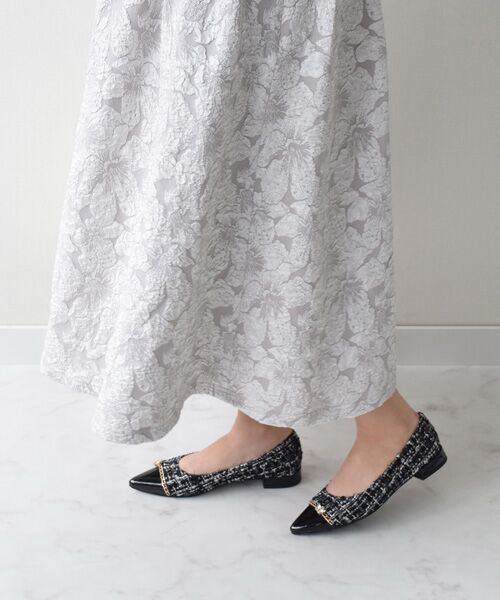 【BRIDGET BIRKIN/ブリジット バーキン】ポインテッドトゥのつま先に、ゴールドチェーンがきらりと輝くフラットパンプス。オケージョンにもぴったりの上品でシックなデザインです。チェーンについたビジューがアクセントが大人かわいい。ヒールが低めなので、歩きやすく疲れにくいのがポイント。見た目だけでなく機能性もばっちりです!