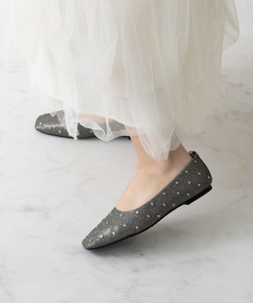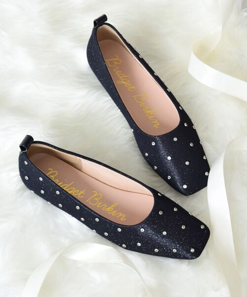 【BRIDGET BIRKIN/ブリジット バーキン】ドットのように散りばめられたビジューがとても華やかなフラットシューズ。グリッター生地でさらにきらめきをプラス。さりげなく上品な輝きで、足元を彩ります。フラットソールなので歩きやすく、カジュアルにも履けてコーデを選びません。デイリーに活躍の予感。