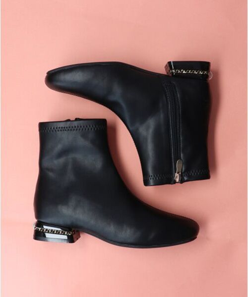 【Bridget Birkin/ブリジット バーキン】ヒールにパールとチェーンが付いたおしゃれショートブーツ。ストレッチが効いて足にフィットし美脚効果も!内側にファスナーが付いているので脱ぎ履きもらくらくです。アッパーはシンプルできれいめなデザインなので様々なコーディネートに合わせられます。(BBカテゴリー)※生産過程に生じるキズが多少ある場合がございます。また素材の特性上、若干の色ムラ、擦れが見られる場合がございますが、こちらは素材の特性となります。予めご了承下さい。※輸送中に多少箱が破損する場合がございます。※サイズ換算(表記)はあくまで目安となります。