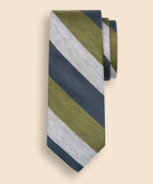 SDGsの観点からも近年注目されているブーレットシルクを用いたオルタネイトストライプタイ表情豊かな質感が魅力のブーレットシルクを使用し、大胆な配色のオルタネイトストライプタイに味わいと奥行きを加えました。ビジネスシーンから休日のジャケットスタイルまで幅広くご着用いただけます。イタリアのテキスタイルメーカー、Classico Seta社の生地を使用し、国内で丁寧に縫製しました。■ブーレットシルク:シルク糸の紡績過程で発生する細かいシルク繊維■Classico Seta社:1987年創業のイタリアのテキスタイルメーカー。主にシルク生地を中心とした高品質な生地を生産しています。素材の魅力と風合いを引き出したテキスタイルデザインが特徴です。■リネン混ならではのネップ(生地表面に現れるポツポツとした微小な繊維のかたまり)のある風合い※商品によって柄の配置に個体差があります。ご注文の際にお選びいただけませんので、あらかじめご了承ください。